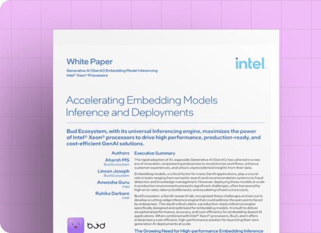 Bud Ecosystem, with its universal Inferencing engine, maximizes the power of Intel® Xeon® processors to drive high performance, production-ready, andcost-efficient GenAI solutions.
